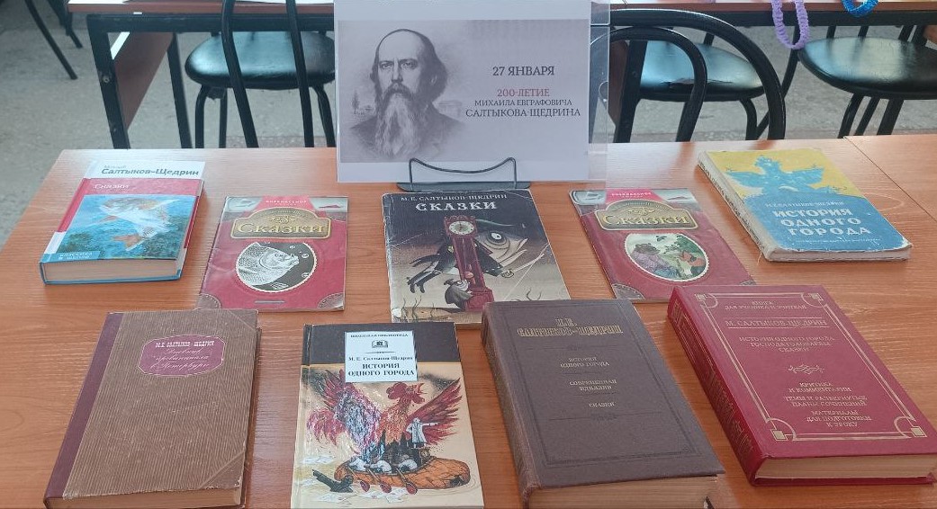 К юбилею писателя в читальном зале библиотеки оформлена книжная выставка. На выставке представлены самые известные произведения Салтыкова-Щедрина: «История одного города», «Господа Головлевы», «Дневник провинциала в Петербурге», сказки. Еще на выставке роедставлены