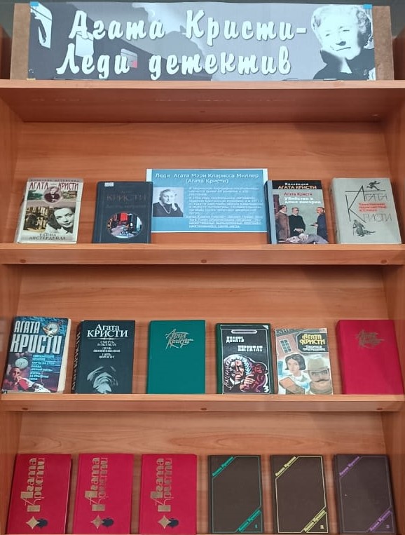 К юбилею писательницы в читальном зале нашей библиотеки оформлена книжная выставка «Агата Кристи – Леди детектив». На выставке представлены книги знаменитой писательницы: «Убийство в Восточном экспрессе», «Десять негритят», «Мышеловка», «Третья девушка» и многие другие.