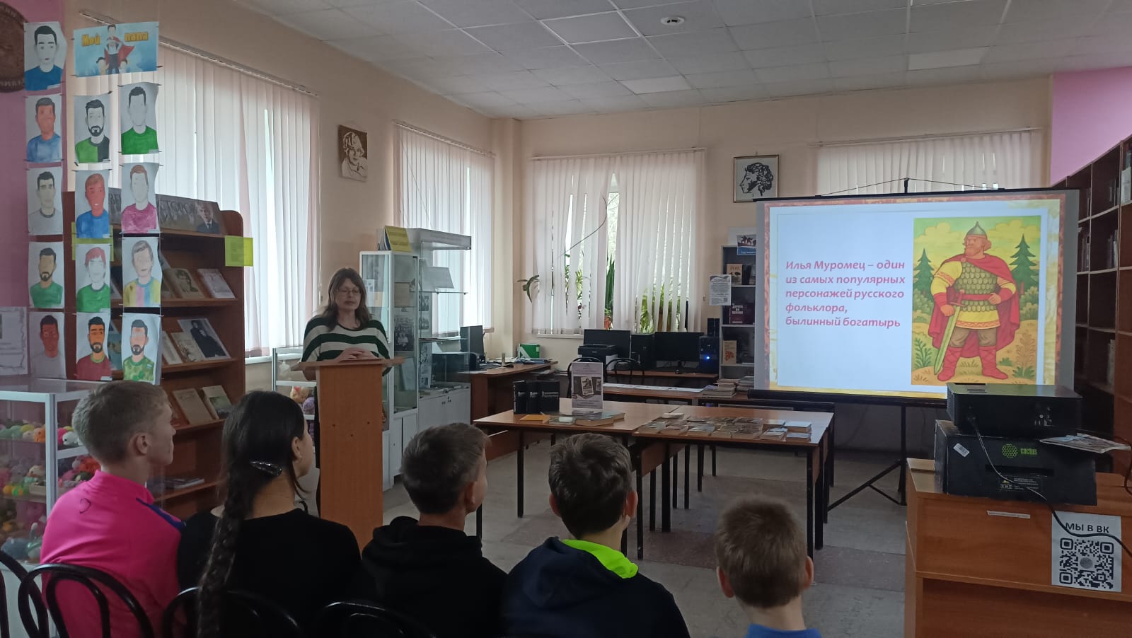 В Моряковской библиотеке им. М.Л. Халфиной прошёл патриотический час для ребят из футбольного клуба "Варяг". Тема нашей встречи в рамках цикла бесед "Герои русской истории" была посвящена одному из самых популярных фольклорных персонажей нашей страны - Илье Муромцу. Славное имя этого богатыря нам известно благодаря многочисленным былинам и народным сказкам.