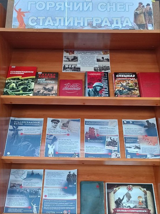 К этой памятной дате в читальном зале библиотеки оформлена книжная выставка «Горячий снег Сталинграда».На выставке представлены как художественные, так и документальные произведения о Сталинградской битве, а также военные мемуары. Приглашаем всех желающих посетить книжную выставку, которая продлится до 13 февраля.