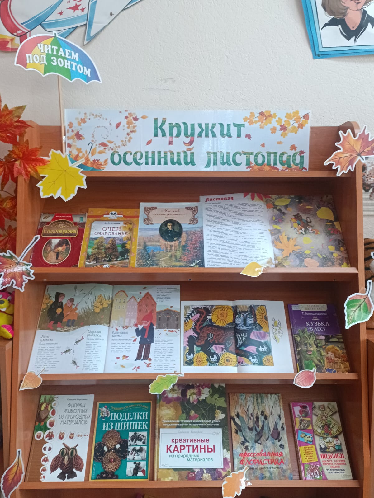 Как хороша золотая осень с ее разноцветным нарядом – яркой окраской деревьев. Этому замечательному времени года посвящается книжная выставка, которая оформлена в читальном зале. На выставке представлены произведения поэтов, писателей и художников об осени. Книги и журналы, иллюстрированные картинами золотой осени, помогут прочувствовать осеннее настроение, уловить аромат яблок, целебную свежесть мяты, манящий вдаль грибной дух.