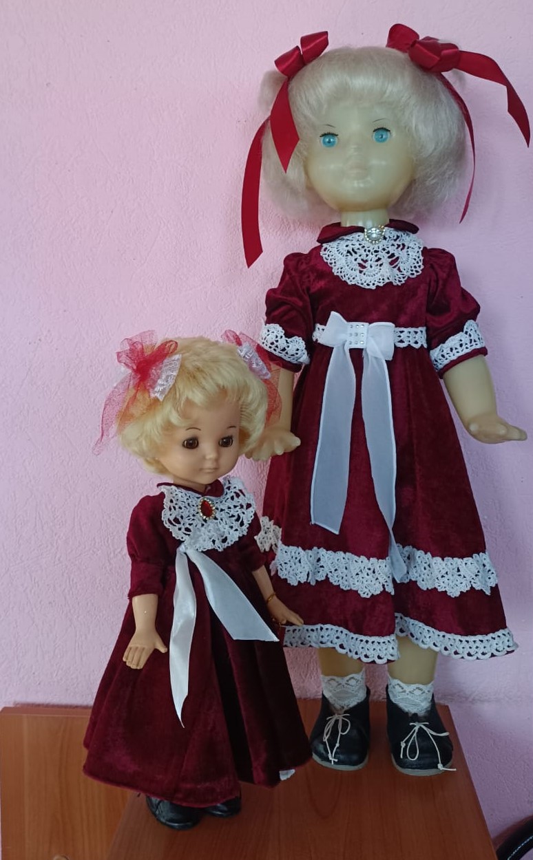 В читальном зале Моряковской библиотеки им. М.Л. Халфиной оформлена выставка "Мастер кукольного платья". На выставке представлено 11 кукол в эксклюзивных нарядах, созданных Тамарой Черепановой. Одежду для кукол Тамара Ивановна создаёт вручную, вкладывая в этот процесс все своё усердие, кропотливость и, конечно же, фантазию. Подбирает для каждой куклы индивидуальный образ, ведь дамы имеют свой характер, предпочтения и пожелания. Образ каждой куклы дополнен украшениями, аксессуарами, атрибутикой. Например, у куклы школьницы за спиной красуется школьный ранец. Все кукольные костюмы, украшения и головные уборы Тамара Ивановна изготавливала сама, шила, вязала, раскрашивала, расшивала бисером.