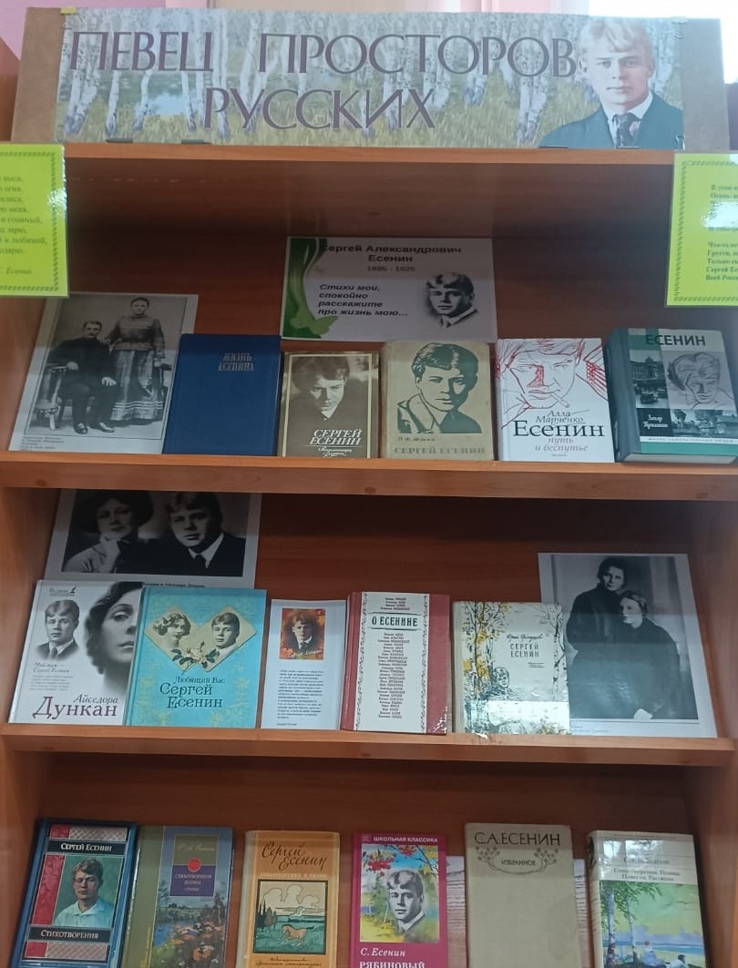 3 октября исполняется 130 лет со дня рождения Сергея Александровича Есенина. В связи с этой знаменательной датой в читальном зале библиотеки оформлена книжная выставка "Певец просторов русских". Творчество Сергея Есенина обладает неповторимой яркостью и продолжает вдохновлять многочисленных читателей.